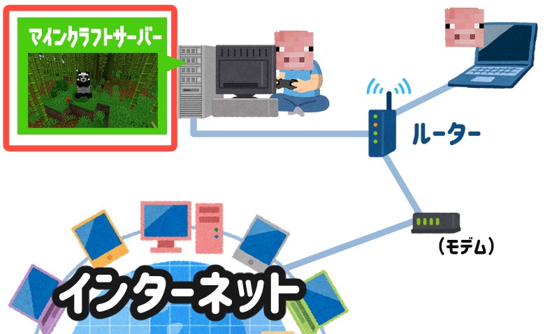 マインクラフトサーバーおよびサーバーというのは、インターネットを使ってサービスを提供するコンピュータのこと。